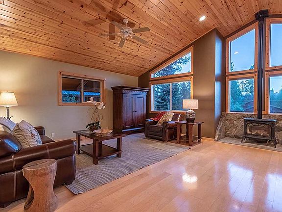 Spacious, beautiful views & prestigious Bennett Flat awaits! Here's a lovely chalet nestled on a private parcel in lower Tahoe Donner! Appointed w/ a wonderful great room, large front & rear decks, this retreat is designed for entertaining! Enjoy the integrated kitchen, big dining area, soaring ceilings & plenty of light! Easy living w/ a BIG upstairs master suite + 2 bedrooms/shared bath. Downstairs offers a 2nd large master + huge family room w/ gas stove. Rear deck spa, flat driveway, big garage - WOW!