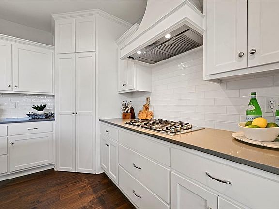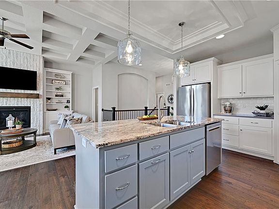 The large primary suite offers a serene retreat and a spa-like bath. Downstairs, you’ll find two additional bedrooms, a living room space, bath, and wet bar.