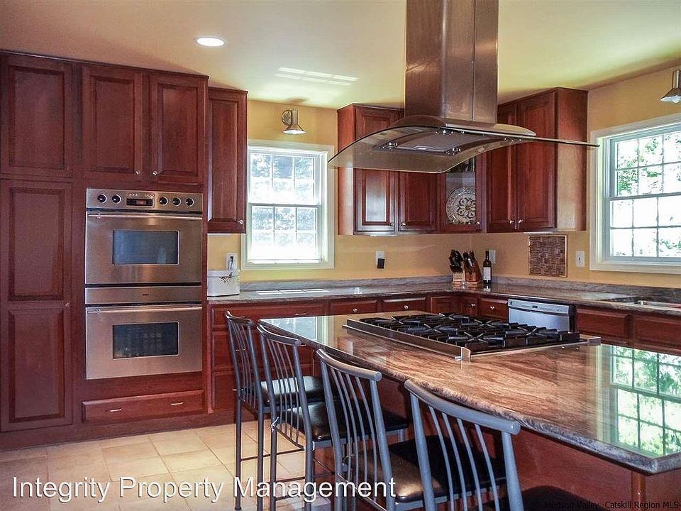 Beautiful custom built home, privately sited on 2.5 park-like acres with front porch overlooking lawn, bluestone terraces and mature plantings. At the heart of this home is a great room featuring: the kitchen of your dreams, with 6 burner Viking Range, Sub Zero, Bosch, and Thermador appliances, solid wood cabinetry, and granite countertops; a sun filled dining alcove; and a living room with fire place and sliding glass doors leading to a backyard oasis with exquisite bluestone patios, koi pond, lush plantings, and hot tub. The first floor also features a den, dining room, half bath, laundry room, and a family room with vaulted ceilings and wood stove. The family room would make and amazing in-law suite or first floor master bedroom, with its full tiled en suite bathroom, private deck and entry. The second floor has a master bedroom with walk in closet, and an en suite bathroom with jetted tub and stand alone shower, a third full bathroom, and three additional bedrooms. There is a detached two car garage, as well as a two car drive-under garage leading to the full dry basement with high ceilings, plumbing for another bathroom, and stairs leading up to the kitchen. In the Arlington School District. Conveniently located 5 min. from Taconic Parkway and 75 minutes to the GW Bridge. 5 min to the wonderful Beekman Recreation center, 20 min. to Metro North, Marist, Vassar, SUNY Dutchess, and the Culinary Institute.