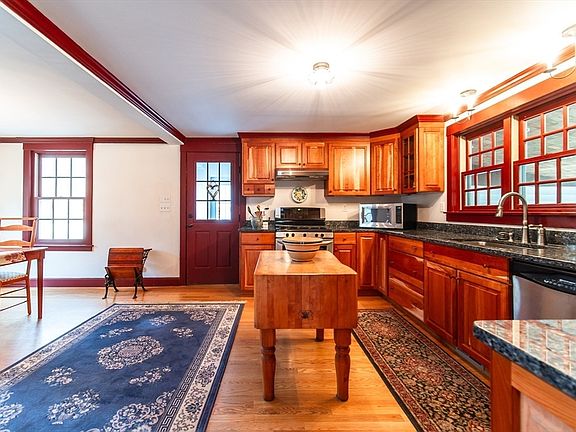 All offers by 3/4, 5 PM. Colonial, nicely set back from the road, welcomes all. There are gorgeous hardwood floors throughout. The open kitchen/dining room boasts granite counters & upgraded cherry cabinetry w/ thoughtful built-ins, & dual-fuel, electric cooking makes for a great workspace. The front-to-back living room w/ a double-sided wood-burning fireplace opens to a slate-floored sunrm that could be used as a cozy family rm or generous office. The main floor also includes a convenient powder room. The sleeping level offers 2 full, remodeled bathrooms. The primary bedroom's en suite includes a spa tub w/ shower & walk-in closet. There is a newer gas-fired heating system, central air conditioning, & a large screened-in porch with custom clear panels for year-round enjoyment. We have an in-ground pool as an added bonus! This well-cared-for home, in a neighborhood with close proximity to area hospitals, trails, golfing, colleges & universities, has remained in the family since 1956.