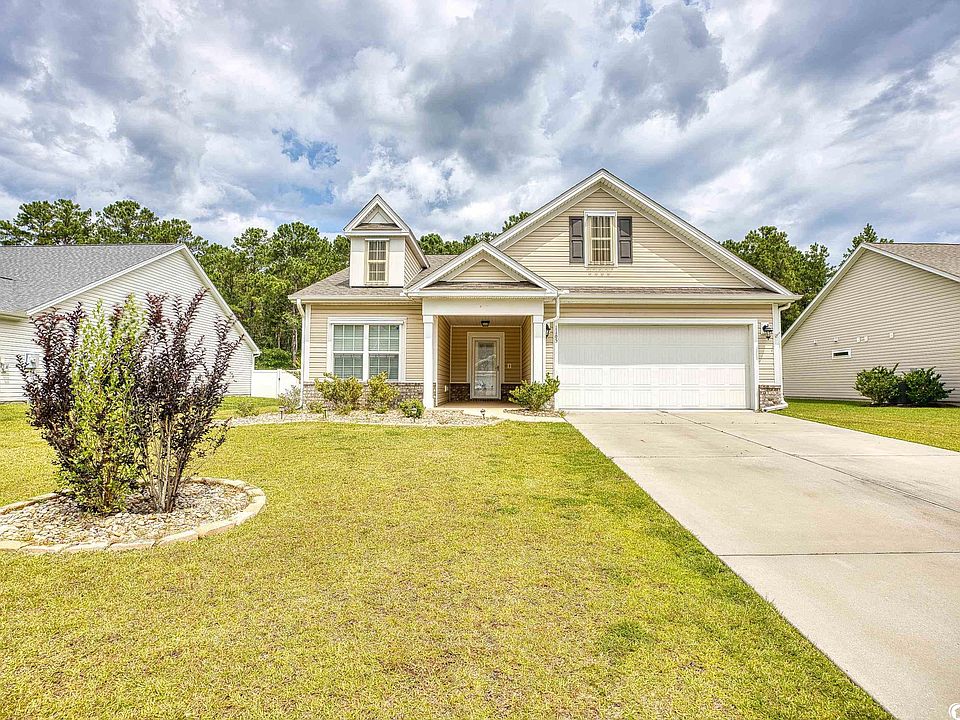 Welcome home to this cute 3BR/2BA home in desirable Lafayette Park in Little River! Hardwood laminate flooring throughout the home, with tile in bathrooms. Kitchen features granite countertops, tiled backsplash, stainless steel appliances, pantry and roll-out drawers in the lower cabinets. Tube lights in kitchen and living area. Spacious living area has vaulted ceiling and electric fireplace. Master suite with tray ceiling, bathroom with dual sinks, step in shower and marble countertop, plus a huge walk-in closet. Two spare bedrooms share a second full bath. The middle bedroom includes a full-size Murphy bed for guests. Front bedroom includes a bed frame as well as in the master bedroom. Enjoy morning coffee or evenings on your screened porch. The back yard is fully fenced with tree line view. Two large outdoor storage chests are included in the sale.