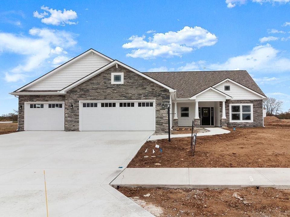 OPEN HOUSE 6/15 - 6/22 DAILY 1:00-3:00 Come see one of Majestic Homes most popular floor plans, the Nora. Three bedrooms, wide open living space, including cathedral great room, kitchen and dining area all open to each other. (PLEASE NOTE: PHOTOS are of previously finished home, colors may differ). Fabulous primary bedroom suite with generous bedroom size, cozy window seat, (blanket storage below); a luxurious bath including large TILED shower, cultured marble double sinks and enclosed commode area. Best of all is the giant walk-in closet and adjacent laundry area which can be accessed directly from the ensuite closet, or from the back hall. It's SO convenient! Split bedroom plan means the other 2 bedrooms are on the opposite side of the great room and have a full bath between them. Guest half bath is also included. Outside you can enjoy sunny or rainy days on the 16x11 COVERED patio, with a 16x10 open patio to enjoy the sun when you like. Majestic standard features include sodded and irrigated front yard, staggered height kitchen cabinets custom built by D&B Cabinets with lighting both above and below cabinetry, tiled backsplash, LVP flooring in kitchen, dining area, and entry, ceramic tile flooring in baths; Stainless steel Frigidaire Gallery Refrigerator, Range, Microwave and Dishwasher, floored attic space, custom closet organizers by Closet Concepts. 3 car garage. Rolling Oaks is on Shoaff Road in the quiet of northern Allen County, and is within a few minutes of grocery stores, restaurants & medical resources. Schools are Northwest Allen, Carroll High School.