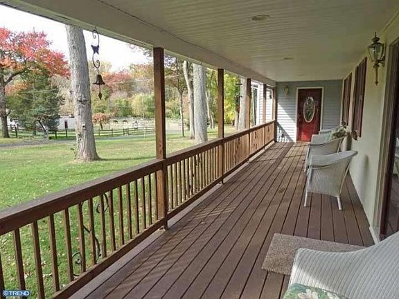 Wonderfully super expanded colonial with plenty of room to roam. Inlaw suite. Walk up on this wrap around porch into single door with side light entry way into spacious living room with hard wood floor and brick fireplace. Large eat in kitchen with laminate flooring and ceramic tile, plenty of counter space and an additional island cook top range with extra bar seating. Oak cabinets and flower box window over sink with high hat lighting. Full bath on main floor as well as spacious dining room with hard wood floors. Upstairs master bedroom suite with skylight and large walk in closet. Also second floor has laundry chute that drops right in front of the washer and dryer. Two nice sized additional bright and cheery bedrooms. Large walk in storage closet in the hallway. Full walk out basement with 7 foot high ceilings, freshly painted with a finished living area feeling. Full spacious in-law suite with one bedroom and den. Entrance through house and private outside entrance as well. It's own laundry area with stackable washer and dryer, full bath with walk in shower and separate heating unit. Full eat in oak kitchen with stainless steel sink, appliances included, skylights and sliding glass door to it own decked area overlooking large fenced back yard. Main house has full covered patio with a hot tub for relaxing after hard day at work. Located on quite dead end street. Driveway has parking for 6 or more vehicles.