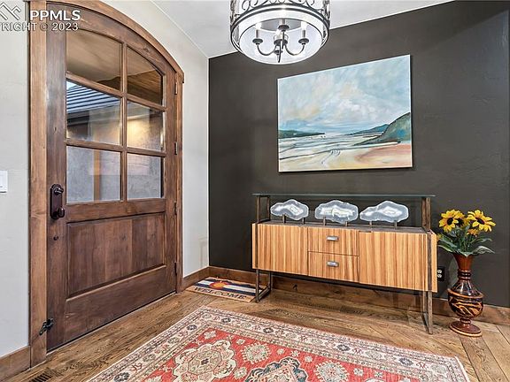 This beautiful, custom built Broadmoor Resort Community home features stunning city and mountain views! Located on a cul-de-sac with no neighbors in front or behind, this home makes you feel that you are in the mountains and away from it all while having the convenience of being within minutes of the Broadmoor and all Colorado Springs has to offer. The stunning exterior opens to a beautiful entryway through a custom front door and into the great room with a stone fireplace, wood beamed ceiling, and access to the spacious, covered deck. Off of the entryway is a formal living room with a fireplace and amazing mountain views. The custom kitchen has a large island with wood counter top, granite throughout, a built-in and lighted hutch, and a large dining area with a fireplace, access to the deck, and a beautiful view of the city. A stunning primary bedroom with a 5 piece bathroom and a custom walk in closet enjoys the same amazing city views. The basement has an additional fireplace in the spacious family room, large wet bar, a walk-out to the covered patio, and all 3 of the secondary bedrooms which feature their own ensuite bathrooms and spacious closets. Amazing views, great natural light, and custom woodwork details are found throughout the home. The Broadmoor Resort Community offers miles of trails, a park like feel, and the security of a continually staffed gate. You also have the opportunity to join the Broadmoor Golf Club and Spa.