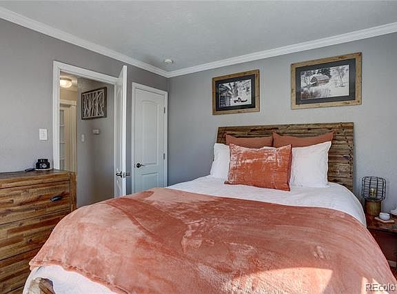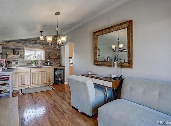 As you enter, hardwood floors greet your feet and flow throughout most of the home. The living room at the front of the home features vaulted ceilings and a shiplap accent wall. The living room is open to the kitchen, which boasts granite tile countertops, breakfast bar with seating for two, tile floors, crown molding, a pantry, and recessed & accent lighting. The laundry closet with included washer & dryer is accessible from kitchen. The adjacent dining room has vaulted ceilings, shiplap accent wall, crown molding, a dry bar with herringbone marble countertop & beverage fridge, and French doors that open to the backyard. The full bathroom is flanked by the bedrooms, both with hardwood floors and crown molding. One bedroom has direct access to the deck in the backyard, while the other features a French door entry. The full bathroom with marble tile floors and shower/tub combo with marble tile surround completes the interior of the home. The no-maintenance backyard includes a deck, patio with firepit, and astroturf area. The oversized 3-car garage is insulated, dry-walled, and heated with plenty of space for a workshop. There is gated access to the garage, as well as additional off-street parking. Located directly north of Lowry Park, and only 2 miles to Lowry Town Center, CommonGround Golf Course, and Stanley Marketplace. Welcome Home!