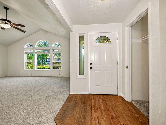 Don't miss this gem! Welcome to your next home in a fantastic location! Close to shopping, hospitals, schools and all the outdoor actives Southern Oregon has to offer...This adorable three bedroom, two bath home sits just down the street from a beautiful park and boasts nice curb appeal with a mature front-yard tree, easy care landscaping and automatic multizone sprinklers and drip system. Inside, you'll find a spacious living room with large windows, vaulted living room ceiling and fan, brand-new carpet and interior paint throughout, tile flooring in bathrooms and laundry room and oak hardwood floors in the kitchen and dining area. The primary suite features a dual-sink vanity, tub/shower combo, and a walk-in closet. Enjoy the sunny backyard from your covered patio—perfect for entertaining or starting a garden. With a great laundry room, ample storage, and a 2-car garage with shelving, this home checks all the boxes.