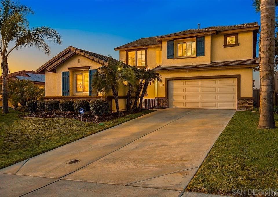 Welcome home to 1165 Hanford Court! This charming turn-key single-family home with a detached Casita nestled on a quiet cul-de-sac in The Heart of the Heritage Community at Otay Ranch. This solar powered home is 2 stories and features 3 bedrooms with a open loft, 3.5 bathrooms, and a BONUS detached Casita with full bath. Casita provided many possibilities for use such as a additional income, private guest house, workspace or additional living space, let your imagination soar! Thoughtfully landscaped grounds invite you into the front yard and upon entrance into the home, you are warmly greeted by warm plank flooring throughout, soaring 2 story ceilings with an abundance of windows that bathe the living space in natural light, custom built-ins, plantation shutters, modern fixtures and crown molding throughout. Walk through a bright and open floor plan seamlessly connecting the kitchen to the living room, family room and leading to the inviting, sunny backyard. Meticulous attention to detail is presented in the kitchen with white quartz countertops, and white cabinetry. Primary Room with attached en-suite which includes dual sinks, a standup shower and separate large soaking tub, perfect for unwinding after a long day. The backyard is landscaped, with stunning views of the mountains and Otay Preserve, and if you’ve had dreams of Farm to Table living this is the home for you, Thought-fully planned out garden in the front with a vast array of Vegetables and endless possibilities for more- a pollinators dream! A large covered patio and an outdoor kitchen equipped with a warming oven, refrigerator and grill area for year-round enjoyment. Community Pool and parks throughout this master planned community.