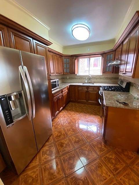 This beautiful second floor rental apartment in newer brick home. Very quiet block which is close to express bus, houses of worship, schools and shopping. Beautiful apartment has an open living/dining room, modern kitchen with stainless steel appliances and granite countertops. Primary bedroom with full bath. Two additional bedrooms with hall bath. Hardwood floors throughout. Off street parking, plus plenty of street parking. Good credit and income required.