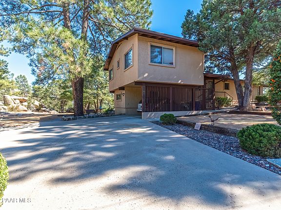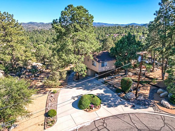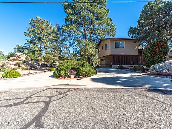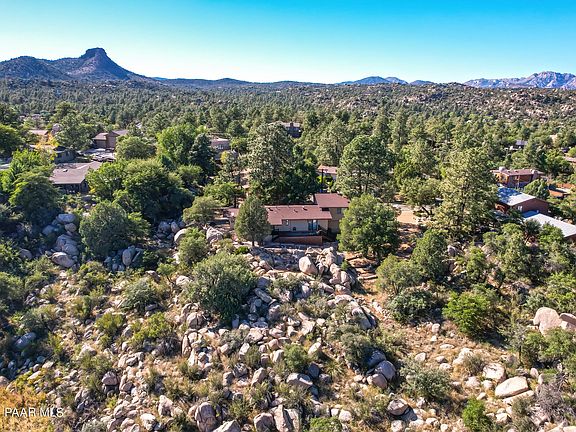 Welcome home to outstanding views on over an acre in historic downtown Prescott Arizona. This fantastic 3 bedroom, 2 bathroom home showcases the beauty of boulder outcroppings, tall pines, and mountain vistas. Located in a fantastic established Prescott neighborhood, you can't beat the short walk to downtown. Open concept kitchen, living and dining room with large picture windows to enjoy the vistas beyond. Multiple exterior living spaces: a covered patio showcasing boulder outcroppings, and a rear Trex deck with views of the Bradshaw mountain range. The primary suite has access the the rear deck and even features views from the en-suite bathroom! Additional office and den provide flexible living spaces to enjoy. Don't hesitate- call for your tour today.
