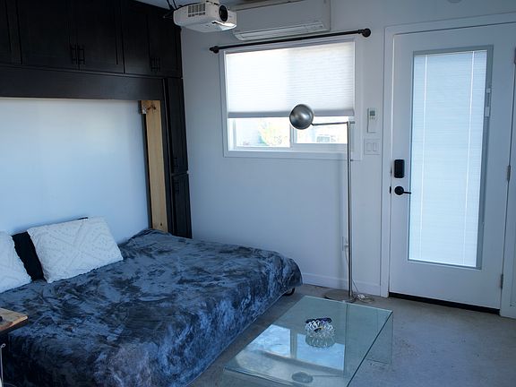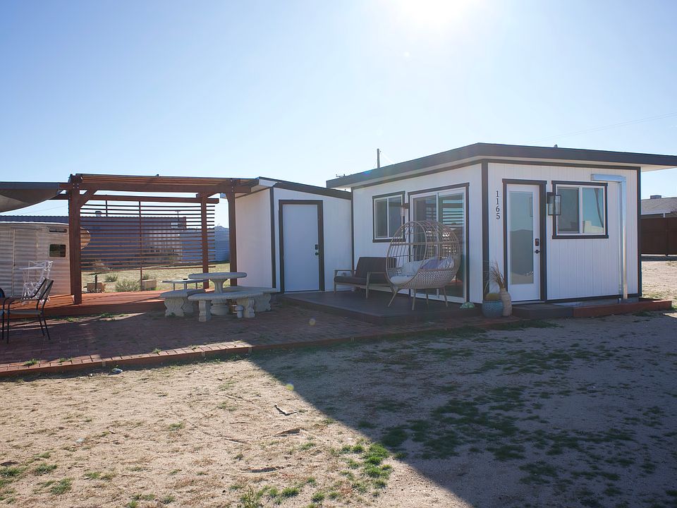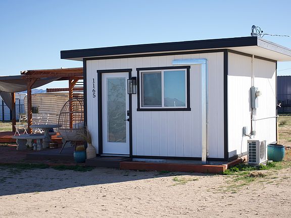 This tiny home at 1165 McGarry Road in Joshua Tree is a great fit for someone who wants privacy, space, and a quiet place to live without the upkeep of a large house. The home is about 198 square feet, but it sits on two full acres of land, so it never feels cramped. With lots of windows, the space feels open and bright, bringing in natural light and views of the surrounding desert.