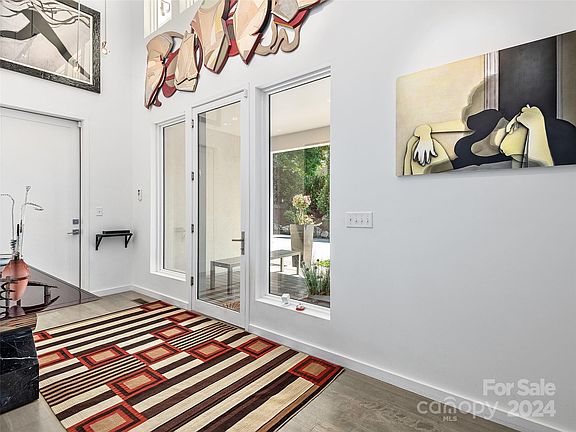 The ‘Glass House’, aptly named for its striking architectural design, stands as a contemporary masterpiece on the shores of Beaver Lake in N Asheville. This impeccably designed residence seamlessly blends sleek sophistication with a love for nature, creating the ideal setting for lavish gatherings, showcasing your art collection, or simply unwinding and relaxing before the sweeping lake and sky views. The main level offers unparalleled convenience and elegance, boasting a breathtaking great room with soaring ceilings and windows, gourmet kitchen, and a primary sanctuary with convenient laundry all bathed in natural light. The extensive collection of artisanal lighting elevates the everyday into a sensory experience. Privacy meets versatility on the terrace level - a haven for guests with their own family room, easy transitional office or bedroom suites or dedicated hobby space all with an easy access carport. This remarkable home fulfills your desire for luxurious mountain living.