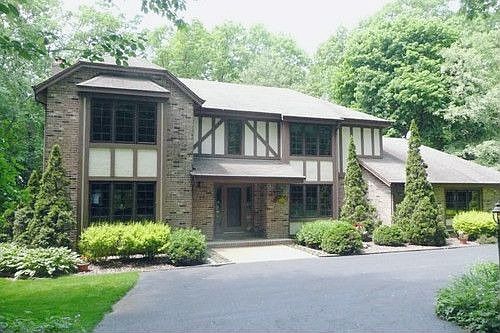 Extremely private, serene, nature filled woods w/mature oak & maple trees, has path that takes you to 335 ft of east shore lake frontage. Spacious Tudor style home has a brick FP, main floor laundry, large WIC off garage entry,& partially finished LL offering extra entertainment space w/FP. French doors off foyer lead to the study that can be used as a formal dining room. Kitchen features Zodiac quartz & Corian counters, planning desk & dinette can seat 10 w/vaulted ceiling. Bedrooms have large WICs.