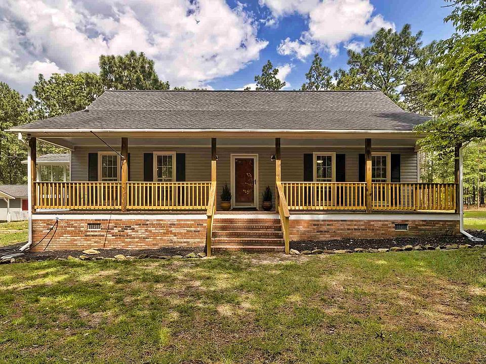 This Country Retreat sits on a Beautiful & Private 7.07 Acre lot that is gated & fenced in. Upon entering from the Large Country Style front porch, you will see the open floor plan between the Formal Dining Room, Living Room & Kitchen all with great modern touches throughout featuring tons of natural light, beautiful new laminate wood floors, custom molding, all new light fixtures & freshly painted interior throughout. Formal Dining Room located at the front of the home features laminate wood floors & custom crown molding. Eat-in Kitchen features beautiful cabinets, tile backsplash, pantry & thick butcher block countertops. Off the Kitchen, extend your entertaining or enjoy a peaceful evening in the 4 Season room with floor to ceiling windows all the way around. The Master Suite on the Main floor has a walk-in closet, completely remodeled bathroom w/ marble tile, large shower & double vanity. 2nd Bedroom on the main floor is perfect for an office or nursery. Upstairs offers 2 additional large bedrooms both w/ tons of closet space & a remodeled shared bath. This property also offers a large workshop approx. 18x18 w/ a kitchenette that is currently being used as a gym has tons of possibilities, along w/ 2 additional workshops w/ power, greenhouse w/power, small stable, greenhouse, storage building & small hay building is waiting for you to make this your home TODAY!! BONUS: Additional updates include brand new vinyl siding, 2 new rear decks & new front porch railing.