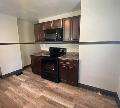 The left side of this 3 Bedroom 1 bathroom Duplex has been completely rennovated to give you all the updgrades you want including central air! Your main level has a large living and dining room with brand new plank flooring, a new kitchen with sleek black appliances and 42'' espresso cabinets. The 3 bedrooms upstairs are have brand new carpeting and modern dark trim. The bathroom is brand new with a tiled tub and new vanity. The rear of the home offers an off street parking spot.