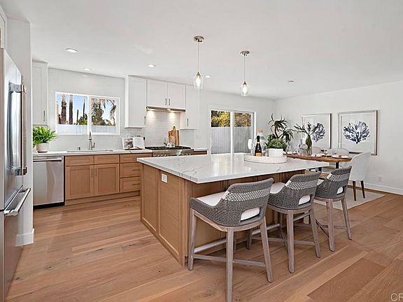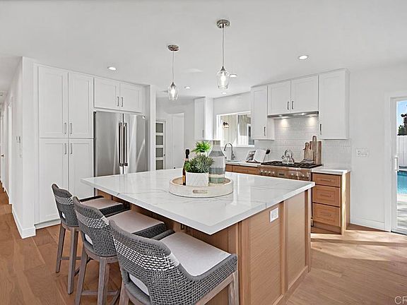 Welcome to your dream home where modern updates meet coastal charm! This renovated 4 bedroom/3 full bathroom single story home spans nearly 1,900 sq ft and is located less than a mile from the beach and close to Carlsbad Village, restaurants, shopping, freeway, and great schools! Step inside to discover the incredible amount of quality renovations and high end updates throughout including designer bathrooms and kitchen with custom white oak cabinets and THERMADOR appliances included. Plus, stay comfortable with totally new AC, furnace and duct work with 2 separate zones, a new roof, quality engineered hardwood flooring throughout, and most sewer lines replaced. But WAIT, there is more!! Outdoor living is highlighted by a fully resurfaced pool, new concrete patio and driveway, and an ocean view deck perfect for relaxing or entertaining! Additional highlights include two master suites, indoor laundry, and no HOA. Light and bright open living room to kitchen, kitchen island with seating plus dining area, all while looking at your pool and entertainment backyard. This is a true move-in ready home designed for comfort and style—your buyers will fall in love!