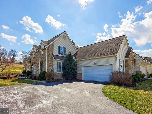 No need to downsize when you move into this luxurious end unit condo! Located in the gated community of Regents' Glen which offers pool and golf memberships, this home has an open floor plan ideal for gatherings and entertaining. As you enter the home, the two story foyer opens to the light filled living room with hardwood floors, vaulted ceiling and gas fireplace. Large kitchen with granite counters, breakfast bar, stainless appliances, tile backsplash and plenty of cabinets. The eat-in dining area with vaulted ceilings leads to sunroom with sweeping views of the golf course and access to rear patio. Separate dining room with hardwood floors, chair rail and crown molding. Primary bedroom has walk in closet with organizer and attached bath featuring soaking tub, tile shower and double vanity. Main floor laundry room with sink and lots of cabinets for storage and a half bath. The upper level offers a loft area that would make a perfect home office, two large bedrooms and another full bath. The finished lower level provides over 900 sf of additional space with family/rec room plus another full bath. Relax and enjoy gorgeous golf course views from the private patio, perfect for those summer cookouts. Two car garage and plenty of driveway parking. The home is within walking distance of the club house, pool and PA Rail Trail and has easy access to schools, hospitals, shopping, and major highways. Turnberry Green is a 55+ community.