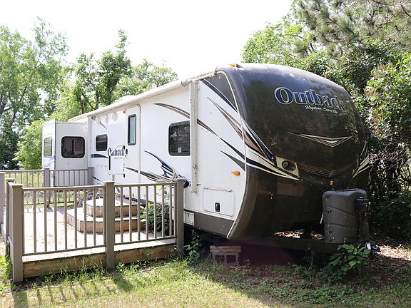 If you have been looking for the perfect getaway during the summer months, look no further. This beautiful park model and camper are located on lake front of beautiful Lake Ashtabula. Both campers feature 3 slide outs and each have their own durable, composite decks. Enjoy the outdoor kitchen, cozy fireplace, and central vacuum system in the 2017 Forest River Salem