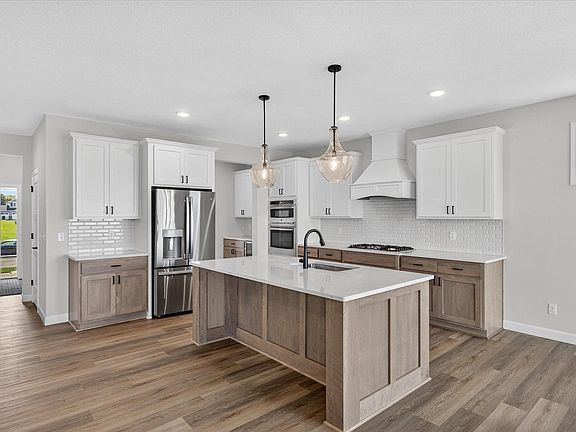 Move in NOW! Come experience the small-town charm of Hanover, MN in this incredible Sedona home here in River's Edge! This stunning Sedona five bed/five bath Sedona has a finished walkout basement and is located on the massive pond in the center of River's Edge! Enjoy the views of the water and utilize your yard space in myriad of ways with no managing HOA! From the moment you enter, you’ll appreciate the seamless blend of style and functionality spread throughout the 4,400+ square feet of living space. The gourmet kitchen is a chef’s dream, featuring built-in stainless steel appliances, a sleek vent hood, and ample counter space for entertaining or casual family meals. A pass-through butler’s pantry connects the kitchen to a formal dining room—perfect for hosting dinner parties or holiday gatherings. The main level offers versatility with a large flex room ideal for a home office, craft space, or playroom. The expansive living room serves as the heart of the home, complete with a centered gas fireplace and abundant natural light. Retreat to the incredible Owner’s Suite, boasting a spa-like bathroom with a freestanding soaking tub, separate shower, and split vanities. The massive walk-in closet offers ample storage and organization options. Upstairs, you’ll find four total generously sized bedrooms. Two bedrooms share a convenient Jack-and-Jill bath, while the fourth bedroom enjoys a private en suite bath and walk-in closet. A spacious 16' x 11' loft adds an additional flexible living area perfect for a media room, study zone, or lounge. The finished walk-out basement offers even more room to relax and play, with a large family room, game area, wetbar, fifth bedroom, ¾ bath, and plenty of storage space to keep things tidy and organized. Outside, enjoy the benefits of a three-car garage with a 17' x 6' bumped-back workshop area—perfect for hobbies, tools, or additional gear. This unbelievable home is located near beautiful parks, popular eateries, and the highly regarded Buffalo-Hanover-Montrose schools. River's Edge families can also Open Enroll into STMA schools. Don’t miss out on this rare opportunity to live in a peaceful, close-knit community with all the space and amenities you’ve been looking for - schedule your visit today!