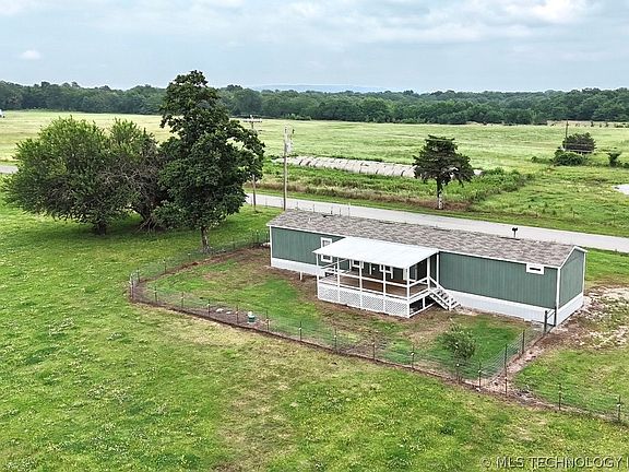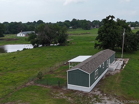 LAKE LIFE MEETS FARM LIFE! Aprox. .58 ACRES 2021 mobile home, 1169 sqft. that was bought new and moved directly onto this property from the manufacture. This is a 3 bed/2 bath home with a big back covered porch for entertaining, watching nature or just relaxing. The front porch comes with a custom wood ramp great for anyone that needs that set up. The home has an open concept floor plan a lot of built in's and the master bed/bath is on one end of the home and the other two at the other end of the home. Washer/Dryer is included. This .50 acres offers the perfect combination of lake + rural + ranch life. Are you ready for your family to call this HOME? Directions 35°19'37.7"N 95°30'18.2"W