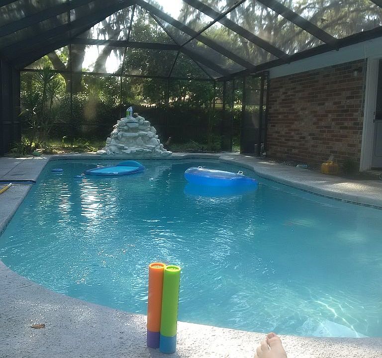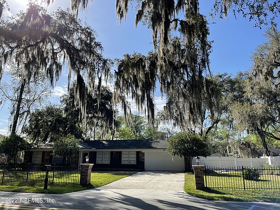 Norwegian Brick construction with Inground Pool Home in the heart of Mandarin. Large wooded lot, decorative front boundary fence, also w/full rear 6' vinyl fencing. Remodeled bathrooms, new flooring throughout. Formal dining room, living/great rooms. Eat-in kitchen with pantry closest. Approx seven year old roof, brand new hot water heater, Built in work bench & shelving in garage. EXTRA deep concrete driveway, easily park 4+ vehicles/toys