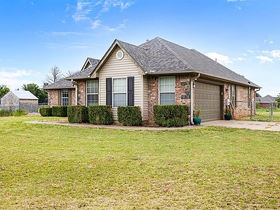 Embrace the Oklahoma landscape on this expansive lot, complete with a chain link fence for added security and a sense of privacy. An underground storm shelter provides reassurance during inclement weather, while the 2-car garage offers ample storage and convenience.