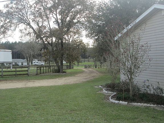 Homes of Merit 3/2 double wide, many updates, on 5 acres 1 mile from Goethe Forest. Steeplechase subdivision with deeded access to Goethe State Forest with 53,000 acres of trails. Also close to Black Prong Equestrian Center. Fenced and cross fenced, barn, run in sheds, good well. Home has large screen room with hot tub, lots of kitchen cupboards, built in TV station, wood burning fireplace, all 3 bedrooms have large walk in closets. Large master suite with huge ensuite, soaker tub. Advanced size dressage area, covered bridge hazard for combined driving. Bring your horses, in great area of small horse farms.