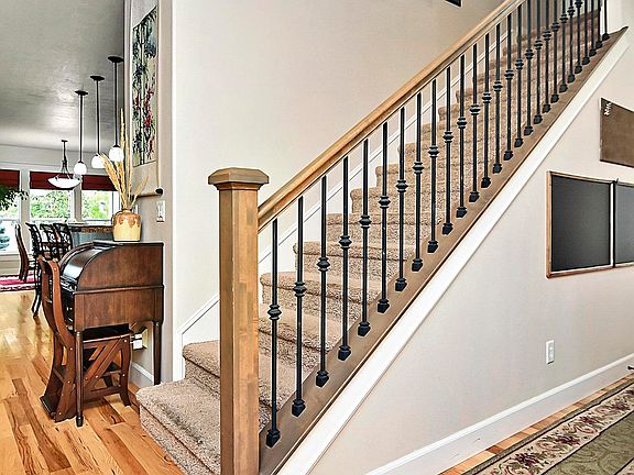 This warm & inviting home, set in the desirable Princeton Place subdivision is surrounded by a fenced & manicured yard, covered patio, corner gazebo, garden space, & inviting side yard. The main living area with its cozy gas fireplace flows seamlessly to meet the kitchen & dining room creating an exceptional space for entertaining. The kitchen features granite counters, a large island, & stainless steel appliances. The spacious main-level master bedroom with its expansive walk-in closet & beautiful en suite master bath features a walk-in tiled shower, dual vanities, & a relaxing soaker tub. Upstairs boasts three bedrooms and full bathroom with dual vanities and a separate bath area. Enjoy the benefits of an extended bay garage, perfect for a work area, home gym, or extra storage which includes two 9'4" long locking work bench/storage cabinets. Gazebo, garden arbors, & extra large terra-cotta pot on the patio included. Other furniture is negotiable.