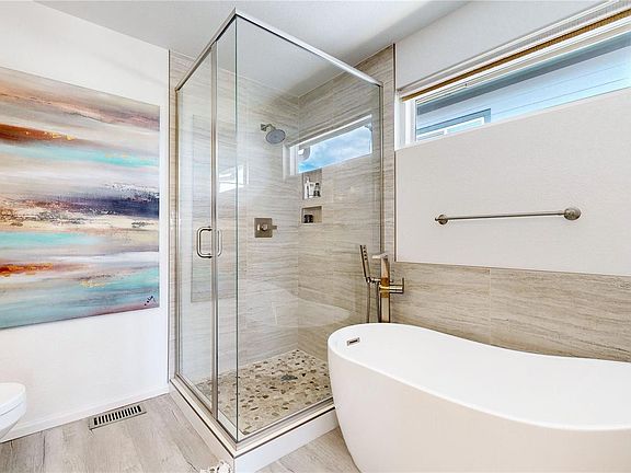 STUNNING ~ BRIGHT ~ UPDATED ~ The Primary Bath Retreat is a MUST SEE! This 3bd, 3ba Littleton home offers the perfect blend of modern design, functionality, and convenient location. Walk into an open-concept living space, drenched in natural light thanks to vaulted ceilings and large windows. The recently remodeled kitchen boasts gorgeous granite countertops, large pantry, a stylish backsplash, and brand new appliances – and a gas-ready stove for the discerning chef. Unwind in your private sanctuary – the spacious primary bedroom features vaulted ceilings and a luxurious ensuite bathroom complete with a soaking tub, a large shower, and dual vanities. Gleaming hardwood maple floors flow throughout the living room and family room, creating a warm and inviting atmosphere. Expand and relax in the fully finished basement: Garden-level windows, a versatile space that can transform to suit your needs. Create your own home gym, dedicate it to musical pursuits, or set up a media room that easily converts to a 4th bedroom if desired. This finished space adds valuable square footage and functionality to your dream home. Enjoy seamless indoor/outdoor living with a large pergola, perfect for relaxing or entertaining. The beautifully landscaped front and backyards (low-water xeriscaping) require minimal maintenance with vibrant new additions like aspens, thundercloud plums, and a blue spruce. This home boasts an unbeatable location within walking distance of highly-rated schools from elementary to high school, local shopping and dining. Near parks and rec centers, trails at Deer Creek Open Space and South Valley Open Space.New roof 2024, newer appliances, new maplewood flooring, new fixtures, landscaping, toilets, gas line, refurbished pergolas, this seller has had pride of ownership! Full co-op Buyer Agent Commission offered to ensure a smooth transaction. Contact agent for pre-inspection details, seller property disclosure and questions regarding rate buy down.