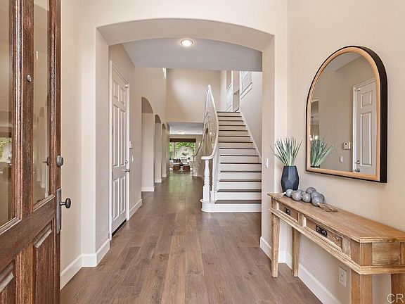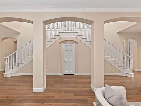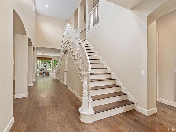 Stunning Carmel Valley home in the prestigious gated community of Torrey Wood Estates. Home boasts 4 bedrooms with optional 5th bedroom/bonus room. Primary bedroom on the first floor, large en-suite bathroom and walk-in closet. First floor also has a secondary bedroom and bath and upstairs offers 2 bedrooms with en-suite baths, spacious bonus/bedroom and loft - perfect for families. 3,810 est.sq.ft. of luxury living w/ soaring ceilings, double staircase & wood floors throughout. Kitchen shines with bright white cabinets, granite countertops & stainless steel appliances. Entertain in an expansive dining & living room with butler's pantry or in the private backyard with beautiful fountain and lush landscaping. Torrey Woods Estates offers a gated community close to trails, award winning schools, easy access to fwys and minutes to beaches, restaurants and shopping. Buyer and buyer's agent to verify all in MLS prior to COE.