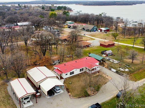 THIS SECLUDED SANDY BASS BAY (JANES JUNGLE ADDITION) GET A WAY IS ON 4 LOTS and HAS A 30x40 BUILDING/SHOP AND YEAR AROUND LAKE VIEW WITH A BEACH ACCESS EASEMENT RIGHT IN FRONT OF THE PROPERTY! If you're searching for an extremely well built- FULLY FURNISHED HOME with multiple structures including a 30x40x20 shop, RV Port, boat port, 2 car auto port, she shed and small storage shed, and greenhouse, YOUR LAKE SEARCH ENDS WITH THIS TURN KEY HOME! It's apparent when you drive up to this home that years of hard work, planning and execution have gone into making this property special and unique. The home has 6inch side walls, reinforced floor joists and sits on a three foot tall decorative and solid concrete block footings for structural stability. The vacant northern most lot is a full lake view lot (Lot 8: 80ftx135ft) could be used for another dwelling or cabin for VRBO or Airbnb. The 15x32 She Shed has electric heat and air and propane heat and could be converted to a sleeping cabin. There are raised and ground gardens with multiple hydrants, huge covered deck, sidewalks, mobility ramp, backyard sitting areas and fenced back and side yards to keep the neighborhood "pet deer" out of the gardens. The Sandy Bass Bay boat ramp is very near and Bell Starr Marina is 15 minutes drive away. CALL TODAY TO VIEW THIS SECLUDED FULL FURNISHED LAKE VIEW SANDY BASS BAY HOMESTEAD!!