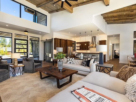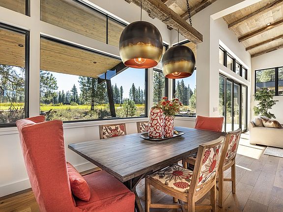 Prepare to be swept off your feet by this magnificent property! You won't believe your eyes when you witness the breathtaking panoramic views of the 14th hole of the Peter Jacobsen Golf Course, the snowcapped mountain range, and the spectacular sunsets that will leave you speechless. Enjoy ultimate privacy and bask in the sunshine in this perfect location. This home was built with love and meticulous attention to detail, and boasts numerous "extras" that you won't find in an ordinary spec home. As you enter the property, a long driveway leads you to a gorgeous entryway with ample parking. The gourmet chef's kitchen is an absolute dream, complete with top-of-the-line Viking stainless steel appliances, dramatic walnut cabinets, and a custom walnut bar top. The Viking range features eight burners and two ovens, while two Viking dishwashers make clean-up a breeze. The island is fully equipped with storage and custom side drawers, and the pull-out trash enclosure includes space for recyclables. The coffee station, microwave, and other amenities complete this kitchen fit for a master chef. The great room is the perfect place to relax and unwind, featuring a gas fireplace with a stunning stone surround and metal mantel, soaring ceilings with reclaimed timbers, and a magnificent wall of glass to let the sunlight in and take in the magnificent views. Two primary suites on the main floor with ensuite bathrooms featuring heated floors, as well as a mud room in both the entryway and off the garage, are ready for your finishing touches to build out to meet your needs. The oversized two-car finished garage provides ample space for all your toys, and additional room to set up your workout equipment. Upstairs, you'll find two more bedrooms, one of which is an en-suite, and a spacious den with stunning views overlooking the golf course. This versatile room could be used as a bunk room, den/family room, or even a 5th bedroom (not legally classified as such). The spacious outdoor living area includes a covered porch with a gas fire pit and is wired for a hot tub, should you choose to add one. Gray's Crossing is conveniently located close to the local middle school, downtown Truckee, and miles of hiking and biking trails, making it the perfect place to call home. Don't miss your chance to fall in love with this property today!