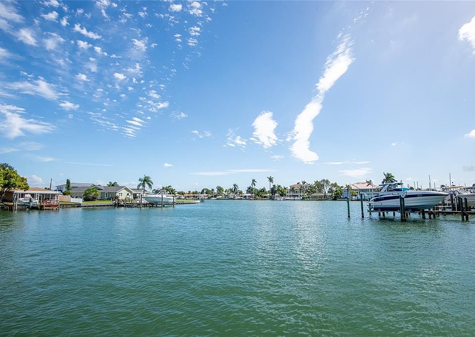 Welcome to Isla Del Capri, a small community of only 18 units with a pool overlooking the water and a fishing dock and kayak launch for your recreation. Enjoy your first cup of coffee watching the dolphins play in your own backyard, or a leisurely stroll to the beach. Grill out next to the pool or enjoy sunsets from the common area balcony. Beach living right in the heart of Treasure Island, the community is conveniently located to John's Pass, restaurants, shops and the famous Treasure Island activities. Upon entering this unit, you are greeted with many upgrades including newer flooring, updated bathroom with stone countertops, plantation shutters, and your own private balcony. The primary bedroom is quite spacious and the impact resistant window is 3 years old. The roof is 8 years old and A/C and hot water heater are both 3 years old. Reserved parking space and many guest parking spots are available. There is onsite laundry next door to the unit and a private storage closet for additional storage. Pets, either 1 dog, OR 2 cats, up to 35 lbs are welcome with approval and 90 day rentals are also permissible with application and approval.