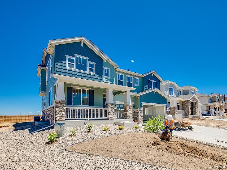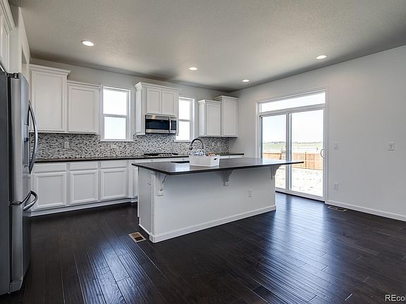 PICTURES OF SIMILAR MODEL. Located in the Buffalo Run Golf Course community, you will enjoy a high-end neighborhood feel on an 8,000 square foot home site with great mountain views. This brand new Matthew floor plan features a 3 car attached garage, upgraded laminate flooring throughout the main level, bedroom and 3/4 bath on the main, gas fireplace with stone surround and build-ins, and covered patio in the backyard. The kitchen offers granite countertops, 42" shaker cabinets,, large kitchen island, formal dining space, and stainless steel gas appliances. Enjoy an expansive master suite with sizable bedroom and sitting area, 5-piece master bath with separate vanities, and an oversized master closet. The laundry room is conveniently located on the upper level close to the master and bedrooms 2 and 3, full bathroom, and loft. Easy access to E-470 and I-76, minutes from restaurants and shopping, 20 minutes to downtown Denver, and 10 minutes to the airport.