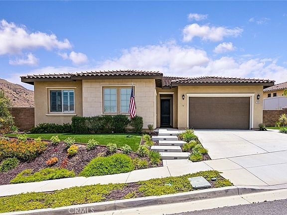 Hey Honey! Stop the car! This VIEW-tastic SINGLE STORY dream home is simply stunning, and features breathtaking VIEWS, VIEWS, VIEWS! Located in the gated, resort style community of Terramor, this 55+ active community provides you with an upper echelon lifestyle with numerous club offerings/facilities. The clubhouse has a fitness center, indoor & outdoor pools/spa/sauna, pickleball/tennis courts & Bar. This turnkey home has one of the largest premium VIEW lots, loaded with major upgrades, and is the largest single story floor plan in Terramor. If you are looking for an entertainer's dream home, with surround sound & smart home technology, this is a MUST SEE! The central chef's kitchen includes upgraded cabinetry, quartz countertops, a massive island, & high-end KitchenAid stainless steel appliances. SoCal living is epitomized here, with fireplaces both inside and out, large retractable sliding doors connecting the inside to the outside California Room w/heaters. The large primary bedroom is peaceful, with exceptional views with a spacious his-hers walk-in closet, bathroom offering dual sinks, makeup vanity, & a glass-surround rainfall shower with bench seating. There is a Guest Suite with bedroom, bathroom, and its own private retreat/sitting room, which could easily be set up as two bedrooms. Just down the hallway, an additional bedroom could also be used as an office/library or personal gym. VIEWS can be enjoyed from the primary bedroom, dining area, family room & kitchen, so YES, you can enjoy fabulous views from nearly every room of this SINGLE STORY stunner! Step outside to take in the fabulous views while at the same time, enjoying your very private and large lot. This premium lot has it all and provides a nicely sized rear grass yard as well as two side yard grass areas, providing ample space for family fun yard games & two raised vegetable garden boxes! The rear yard also features a built-in barbecue island with side burner, refrigerator and bar area; a perfect place for friends & family to gather while you “grill “your way to dinner! This home is powered by a FULLY PAID 16 panel SOLAR, and features beautiful “no water” grass as well as internet managed "low water" landscaping! The house has ceiling sprinklers for safety. A nicely sized inside laundry room and 3 car garage spaces (with built-in workbench) complete the package! This home truly redefines the meaning of “turnkey” and is a MUST SEE ….WELCOME to your new home and new lifestyle!