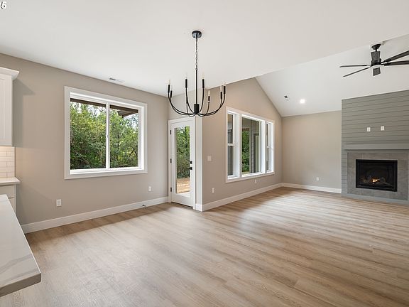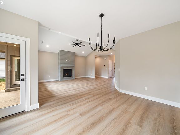 Open and spacious floorplan with 10' ceilings and vaulted ceilings throughout. The vaulted Great-room with fireplace opens to the dining room with door to the covered patio. The kitchen features a stylish island, large pantry, and stainless steel appliances. The vaulted Primary Suite has a door to the covered patio, double sink vanity, walk-in closet. The laundry room has a sink. This beautiful home is situated on a nice sized lot that backs to Greenspace/Wetlands. This home is 100% complete.