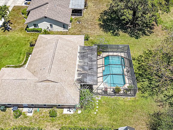 The private backyard oasis is ideal for entertaining family & friends on the covered/reinforced screened patio w/ pool & the OVERSIZED YARD allows kids & pets to run around and play.