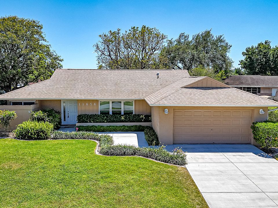 STUNNING! This 3 bed, 2 bath POOL HOME boasts IMPACT WINDOWS, NO HOA & 2020 ROOF, located in an A-RATED SCHOOL DISTRICT in the highly desirable neighborhood of Eastwood. From the moment you enter, you will be wowed by the architectural details, spacious layout & tranquil backyard/pool views from almost every room & you instantly know this is the one. The spacious, split bedroom floor plan features vaulted ceilings & gorgeous wood accent ceiling, giving this home a bright and airy feel. 2 living/dining areas surround the kitchen w/ barstool seating, pantry & custom tiled backsplash.The primary suite features an oversized walk-in closet & en-suite bath w/ dual-sink vanity & walk-in shower w/ floor-to-ceiling frosted glass.The addt'l 2 bedrooms both have large closets & get to enjoy a full CABANA bath w/ shower/tub combo.