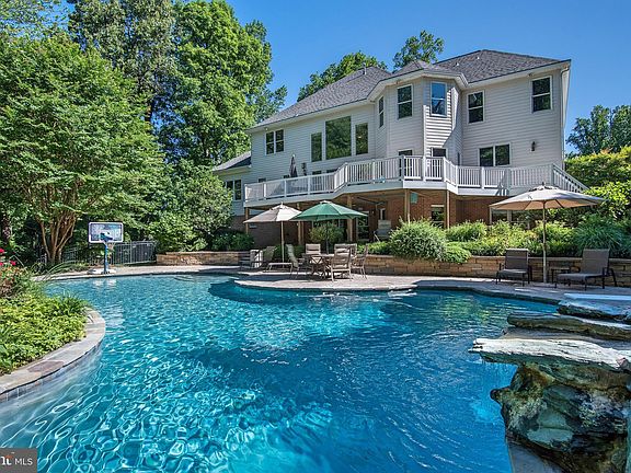 Gorgeous, one of a kind, brick 6 bedroom, 5 bath home in desirable Quarterfield neighborhood sits on a private, picturesque 1 acre lot. As you enter the breathtaking two story foyer your attention is immediately drawn to the refinished hardwood floors that flow throughout the main level. The expansive main level includes a sun drenched 2 story great room with gas fireplace, custom built-ins and a wall of windows, a study/office with gorgeous built-ins, sunroom with vaulted ceilings featuring skylights, guest suite, and more! Upstairs the master suite, princess suite and 2 additional bedrooms with Jack & Jill bath is sure to delight all. The lower level is outfitted for the kid in everyone with a theatre area featuring surround sound, an indoor sport court, bedroom and bathroom. The backyard oasis is an entertainers dream. The spacious deck overlooks the custom $250,000 free form heated pool with spa, diving & sliding boards and lights. Outdoor speakers provide the soundtrack for your life.