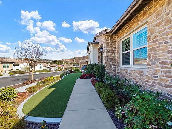 HAPPY NEW YEAR! You have arrived, at Terramor, California's only 55+community to make the top best places to retire! This single story, spacious home provides luxury living! So many exterior and interior DETAILS and UPGRADES make this home a MUST SEE! The open floor plan and stylish interior choices include beautiful LVP flooring, stunning fixtures, crown molding, wide hallways, quartz and granite counters. The decor is magazine worthy!The home boasts 3 bedrooms, all with their own private en suite. In addition, there's a SPACIOUS office adjacent to the family room with a BEAUTIFUL built in entertainment center. The KITCHEN opens up to the FAMILY-ROOM and features a huge walk-in pantry. A LARGE island with a WHITE farmhouse sink, along with plenty of CABINETRY space, to offer a perfect place for entertaining. There is a large, private PRIMARY suite at the back of the home complete with HUGE glass walk-in SHOWER, separate dual sinks with a vanity, and a MASSIVE walk-closet. There are 2 exits to the BACKYARD, both through large pocket sliding DOORS that lead to a CUSTOM California room. This backyard is the perfect spot to enjoy your morning coffee or watch the evening sunset in front of the outdoor, built-in fireplace! The spacious garage has an expoxy floor and more built-ins! All of this sits on a beautifully landscaped lot, complete with citrus trees and low maintenance turf. This STUNNING home is perched in a master planned community that has parks, trails, pools, clubhouse, gym and much, much more! THIS IS THE ONE YOU HAVE BEEN LOOKING FOR!