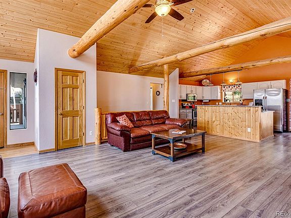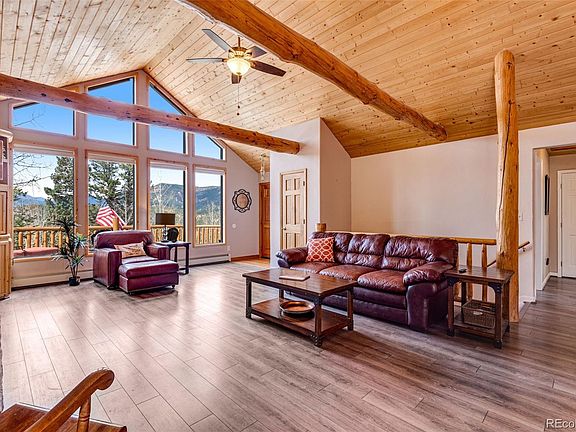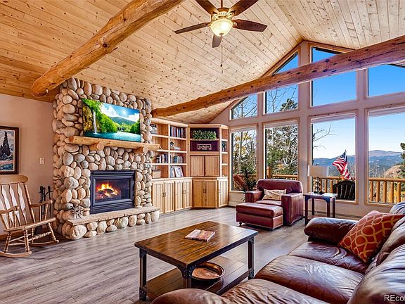 Welcome to Kings Valley! Stunning Mountain Home, a perfect opportunity to purchase a home with the most amazing sweeping mountain views. This home has been kept in immaculate condition. Trex decking allows ample space to relax outside with a warm or cool beverage and enjoy the views. Enter the main level to enjoy vaulted pine ceilings with log accent beams. The gorgeous river rock fireplace and custom built ins offer a cozy place to enjoy the views from inside. Open concept living merges the living room, dining room and kitchen into one spectacular entertaining space. The kitchen boasts a large island, granite counters and stainless steel appliances. Master suite with full bath on the main level along with a secondary bedroom and bathroom. The lower level offers another family room, entry from the garage, a bedroom, a full bathroom and spacious laundry room. Two car attached garage allows for loads of storage. This home is located on nearly a half acre with access to public water and sewer system. Easy access to 285. Just 25 min to SW Denver Metro. Minutes to town for shopping & dining. The property is covered with an abundance of lovely blue spruces & aspen trees creating a stunning, charming place to unwind. This would make a fantastic turn-key vacation or second home as it will be fully furnished. Don't miss your chance to own this gorgeous home with spectacular views!