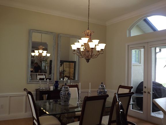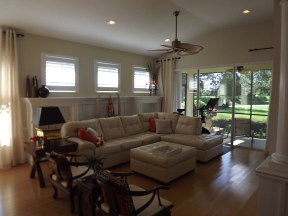 Less than 4 miles to Ft. Hamer bridge to Bradenton and Lakewood Ranch. Builder's Model-like home w/ $65K in upgrades after owner purchased. This home is on premium lake-front, maintenance-free lot in gated-community. Neal Signature Home w/ many windows, all w/ existing plantation shutters, drapes, or upgraded shades. Arched doorways, Georgian columns w/ molding trim, built-in book and media shelves, upgraded lighting, crown and base molding throughout. 12' ceiling in the dining room, with 7.5" crown molding in tray ceiling & beautiful chandelier. Upgraded lighting & ceiling fan w/ cathedral ceiling in living room. Real bamboo floors in living room, dining room & den. Den/3rd Bedroom has pocket doors for privacy. Ceramic tile in entry, kitchen and baths.Two lanais:1 large lanai at back of home, & 1 off kitchen slider door and French doors in dining room - whole house feels very open without being a big box. 42" upper cabinets w/ bump-out showcase glass cabinet and top & bottom moldings & under cabinet lighting in kitchen. Upgraded kitchen GE Profile appliances w/ DOUBLE oven stove w/ convection oven. Extra lge pantry-laundry off kitchen w/ HE washer/dryer and extra cabinets. All closets have built-ins; extra clothes closet in garage. Garage has 5- 4'x8' overhead racks for storage.New ext paint in 2016 & new a/c in 2015. Lawn maintenance incl mowing, pruning & irrigation maintenance. Miles of walking paths, large clubhouse, exercise rooms, swimming pool/spa, dog parks, basketball, lakes & parks.