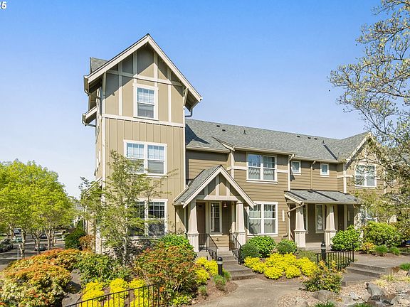 Step into timeless elegance in this beautifully designed end unit townhome that blends European architecture with modern luxury. The thoughtfully designed layout features a light-filled open-concept main level, anchored by a stylish kitchen outfitted with granite countertops, newer stainless steel appliances including double ovens, perfect for both everyday living and entertaining. Upstairs, the primary suite includes a walk-in closet, ensuite bathroom and a private loft space—ideal for a home office, art studio, or peaceful yoga retreat. With 3 bedrooms and 2.5 bathrooms, this home offers the perfect balance of charm, comfort, and functionality. Additional highlights include an extra deep two-car garage, courtyard water feature, and the privacy and natural light afforded by its desirable end unit location. It is conveniently located between Progress Ridge and Washington Square Mall. Very quiet with friendly neighbors and a serene courtyard water feature. New roof in 2023 and exterior paint in 2024. With its classic European aesthetic and contemporary upgrades, this home is truly one-of-a-kind. Only one other floorplan like it.