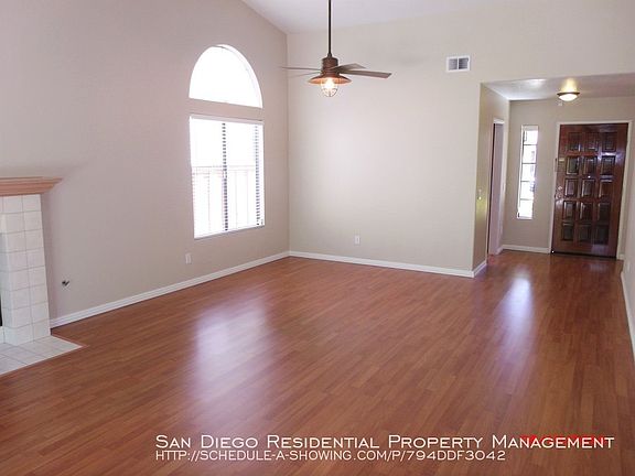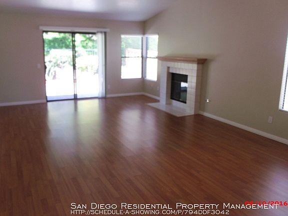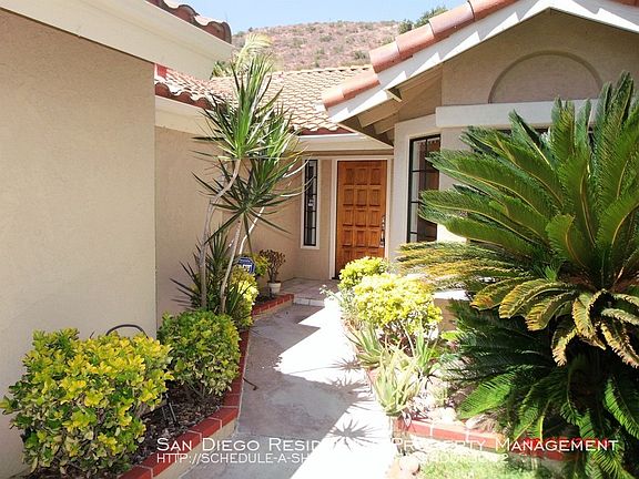 SCHEDULE A SHOWING ONLINE AT: showmojo.com/lh/794ddf3042 SCHEDULE A SHOWING online by visiting Or call Beautiful Single story home on a large, private lot in Sabre Springs. 3 Bedrooms, 2 full Baths with approximately 1375 sq. ft. This home has many impressive features and amenities such as formal living room with a fire place; casual family eating area off spacious kitchen; beautifully renovated chefs dream kitchen with all major appliances where the refrigerator is included and beautiful natural wood cabinets; 2-Car attached garage with lots of storage space as well as a separate laundry room which includes a full sized washer and dryer. Sliding doors in the master bedroom and living room areas lead you to a fabulous fully fenced back yard area that is perfect for your outdoor dining and entertaining pleasure; expansive master suite and a generous sized closet; Wood laminate flooring throughout main living areas and bedrooms. Additional amenities include new paint, vaulted ceilings, air conditioning, gas cook top and granite counter tops in kitchen, and separate dining area. This home is part of the coveted Poway Unified School district. Near parks, walking trails, upscale shopping and easy freeway access. Small pets will be considered by owner. Regular landscape service is included in the rental amount. No Smoking, please. If you are interested, we suggest that you please drive by the property and confirm if the location and neighborhood meets your needs, then call San Diego Residential Property Management at to set an appointment to see the interior of the residence. To see the complete listings of all of our available properties visit our website at www.sandiegorpm.com San Diego Residential Property Management is the only authorized agent representing the owner of this home. Call San Diego Residential Property Management to get additional information: . CA-BRE# 01859951 2 Car Attached Garage 3 Bed/2 Ba Award Winning Poway Unified School District Hard Flooring Throughout No Carpeting Includes Refrigerator And Washer/Dryer Includes Regular Landscape Maintenance Single Story Home
