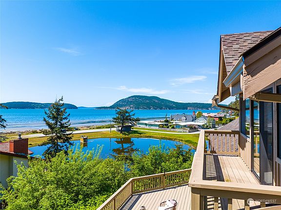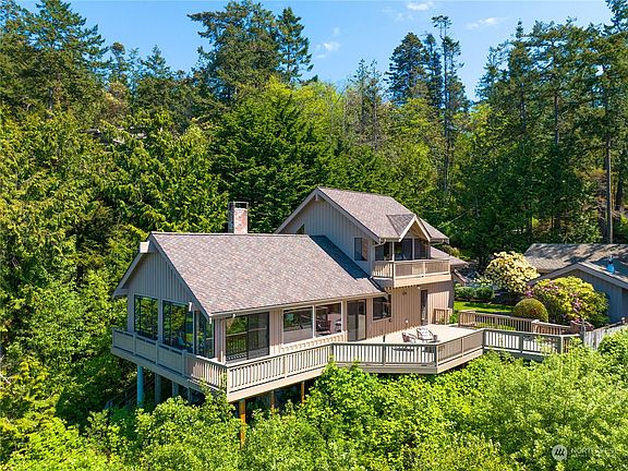 Captivating water and lake views from this single owner custom NW beach home. Perched to absorb the stunning views and just a short stroll to the sands of Alexander Beach. Soaring wood ceilings with beam detailing and warm wood walls welcome you into the great room space perfect for gathering around the cobblestone fireplace on a winter evening or throw open the doors onto the huge entertaining deck and let the summer ocean breezes in. Main level living with bedroom, bath and laundry or utilize the owner's retreat upstairs with panoramic views, vaulted ceilings and 3/4 bath. The darling guest house has 3/4 bath and fireplace. Detached garage with shop space. Alexander Beach is treasured gem offering the best of Fidalgo Island Living.