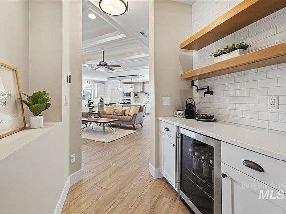 Home has been "Contingent Sale" since 4/12/23 and is now FULLY BACK ON THE MARKET Stunning 2020 Parade Home w/tons of upgrades showcases the beauty of the modern Farmhouse Design. 4-car garage w/epoxied floor. Wide Lot allows for RV PARKING. The elegant entryway leading to an Open Great Room w/Fireplace, Hidden TV & Gourmet Kitchen w/Large Island, Quartz Countertops, Pottery Barn pendant lighting w/matching chandelier in dining area, Stainless Steel Appliances & Walk-in Pantry. 3 BDRM, 2.5 Bath, Office or 4th BDRM & 20x21 Bonus Room w/full theater system. Walk-in Closet & Barn Doors in Master BDRM. Large Master Bath w/Soaker Tub and Tiled Shower. Covered Patio w/Built-in Kitchen & SS Weber "Summit" grill. Extended patio w/sitting dining area. Fire pit w/ boulder seating. Custom trim work, wainscoting, shiplap, Central Vac System & Hunter Douglas Powerview automated blinds in every room! DOWNLOAD UPGRADES & AMENITIES LIST! Located 2 miles from Lake Lowell & Redhawk Golf Course, 4 miles to Downtown Nampa.