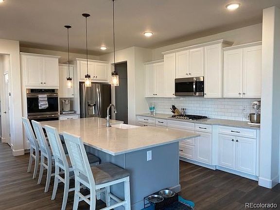 Beautiful Home in Golf Course Community of Buffalo Run! This sought after James Model features such a unique floorpan that is sure to intrigue. The light and bright kitchen features stainless steel appliances with double oven, ceramic sink and beautiful uncut quartz counters. The vaulted fireplace and vaulted ceilings are sure to amaze! Over $100k in builder upgrades with Lokal Homes including, Heated floors in master bath, A Balcony in the Master Bedroom, Gas line to grill on back patio, Upgraded 9 foot ceilings in basement with rough in plumbing for bathroom, Rough in plumbing at laundry room. Professional Landscaping in the backyard including stamped concrete. A new Radon mitigation system, Solar landscape lighting, Ring doorbell, Smart garage door system, Painting interior of garage, Water softener and filtration system with chlorine reduction, 220v electrical to patio for hot tub.