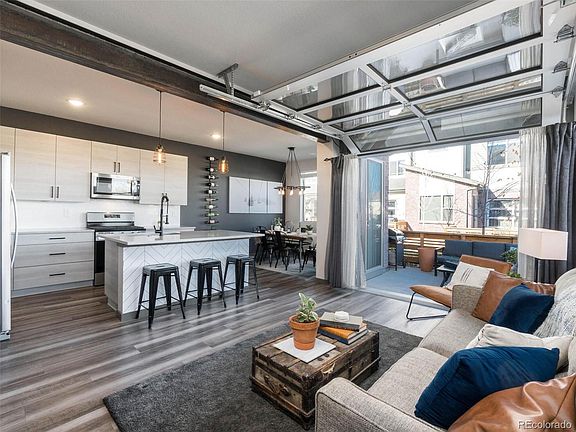 This stunning, modern corner-unit town home is the ultimate blend of style, function, and entertainment. Designed for those who love open-concept living, the main level features a unique garage-style door that seamlessly connects the living space to a private outdoor patio, perfect for indoor-outdoor living. With newer construction and sleek, high-end finishes throughout, this home boasts a spacious and light-filled layout. The kitchen is a chef’s dream, featuring granite countertops, stainless steel appliances, and an oversized island with bar seating. The main level flows effortlessly for hosting gatherings, whether inside or out. Upstairs, you’ll find three generous bedrooms, including a luxurious primary suite with a spa-like ensuite bath, double vanities, and a large walk-in closet. The additional bedrooms are perfect for guests, home office space, or family living. Ideally located near I-70, this home offers quick access to the mountains, downtown Arvada, and Golden, making it a prime spot for adventurers and city-goers alike. Walk to nearby parks, restaurants, and shopping. This town home delivers the best of modern living in a fantastic location.