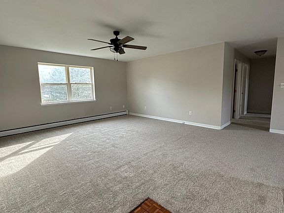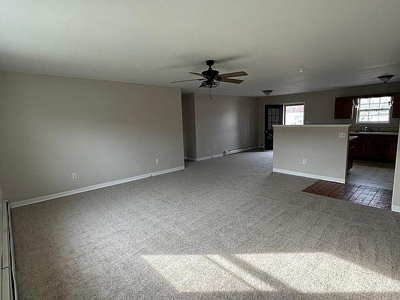 AGE 55+ APARTMENT COMPLEX! A spacious, freshly painted apartment located on the 2nd floor of a 4-complex building. New carpet installed throughout the entire unit. 2 generously sized bedrooms + 1 room that would be a great study or office room. This unit includes an open 12x15 deck off the back that's perfect for grilling or soaking up sun! 13 minute drive to local grocery stores, fast food, + shopping. This is a very quiet complex. Owner supplies heat (oil), water, sewer, & garbage. Refrigerator & stove included. Located on 2nd level of apartment complex. 1st level community coin operated washer & dryer included. Renter is responsible for electric, telephone, & cable/wifi. No smoking. No pets allowed. Private parking lot. Month to month lease agreement.