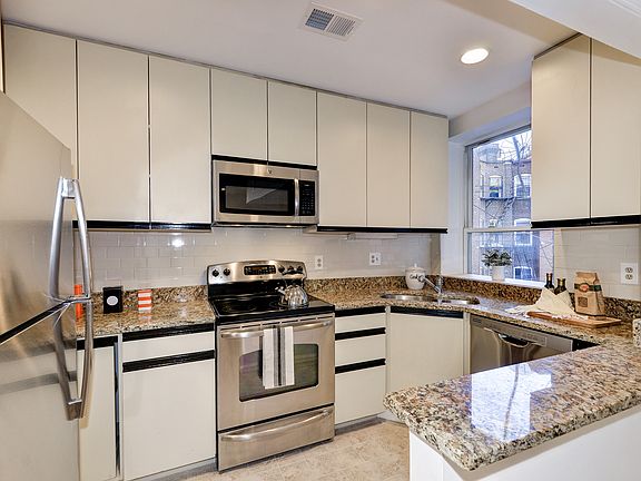 LR with newly re-finished H/W floors and wood-burning fireplace. Gourmet kitchen w/granite counters & stainless steel appliances. Spacious carpeted bedrooms ~ each with their own full bath. Walk-in closet and newly remodeled en suite bath. Private deck off master BR Unit can be rented furnished or unfurnished