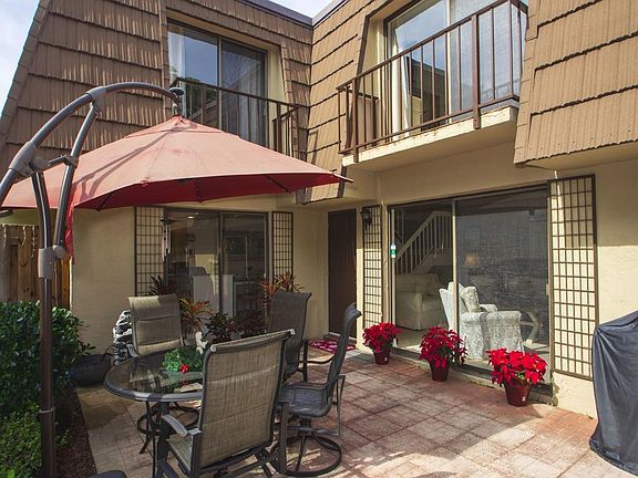 Convenient location! Lovely updated 2 story villa w/bright beachy feel! Living room & kitchen w/dining area have sliding doors & view the Lrg private fenced patio. Tile floors thru-out w/new carpet on stairs. 2nd floor has 2Brs/2 full Baths. Laundry room & half bath off the kitchen. Storage space under stairway. Condo association maintains exterior & roof. 2 pet/weight restrc. RmSzAprx